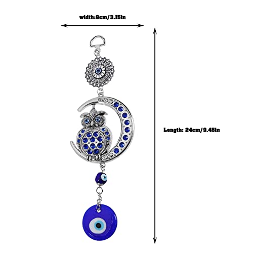 Decorazione a forma di gufo blu da appendere ornamento a forma di luna ciondolo amuleto da appendere alla parete accessori per interni auto, ufficio, giardino, decorazione per la casa, lunghezza 24 cm