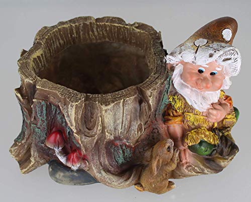 Decorazione da giardino, vaso di fiori con gnomo del bosco, altezza cm 16, codice 15198