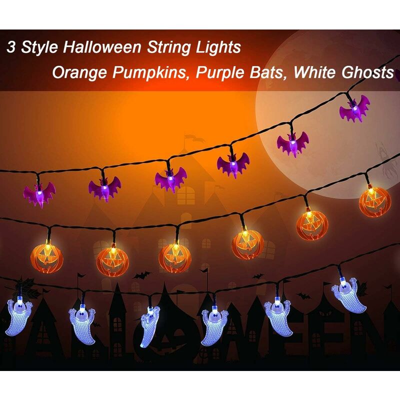 tema Halloween, carnevali, feste, celebrazioni e altre occasioni speciali. I 3 set di luci delle corde hanno diversi colori di luce: il fantasma della luce delle corde emette luce bianca, le zucche emettono luce arancione e i pipistrelli emettono luce viola. Alimentazione a batteria: ogni stringa di luce necessita di 3 batterie AA (non incluse), a basso consumo energetico, sicura e affidabile. interruttore singolo, scorrere a sinistra ea destra per aprire o chiudere la corona, che è più comoda da usare. Impermeabile: le luci delle corde sono impermeabili, ma la custodia della batteria non è impermeabile, quindi mantieni la custodia della batteria in buone condizioni. riparato dalla pioggia, utilizzabile a dentro e fuori fuori.