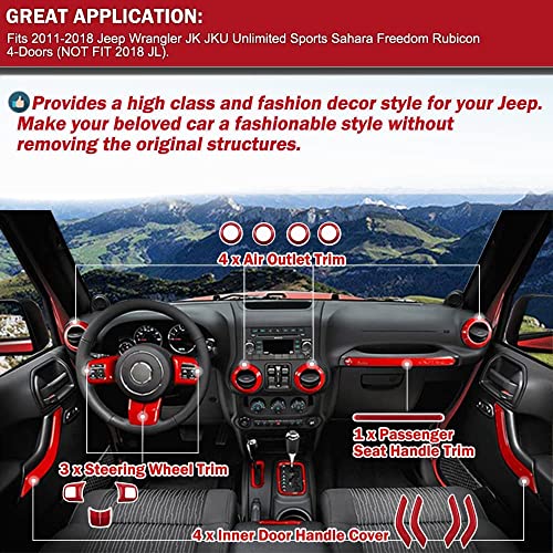 Decorazione per interni compatibile con Jeep Wrangler JK 2011-2018, kit di finiture personalizzate per Jeep Wrangler e Jeep Interior Trim Kit (rosso)