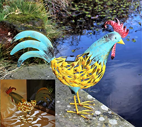 HOME HUT Decorazione luminosa da giardino ad energia solare in metallo a forma di galletto
