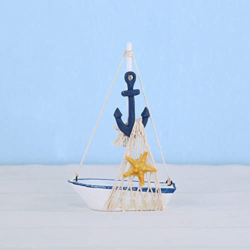 WADC Decorazione Mediterranea della Barca a Vela Decorazione Durevole della Barca a Vela Decorazione in Legno per Barche a Vela per la Decorazione della Casa e delle Feste 1 Pezzo (Bianco e Blu)