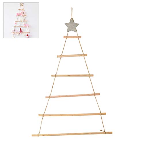 Decorazione murale appesa allalbero di Natale, 80 cm appeso in legno corda scaletta appeso a parete ramo albero di Natale decorazione, pre-illuminato albero scala in legno decorazione natalizia