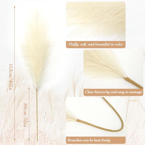 Grande erba di Pampas: La nostra confezione comprende 6 rami realistici di Pampas Grass, alti circa 113 centimetri ciascuno, collocati in un vaso trasparente nel soggiorno. L'erba piena e soffice di Pampas crea un'atmosfera romantica ed elegante, aggiungendo un'atmosfera naturale alla stanza e diventando la decorazione perfetta per la vostra stanza.