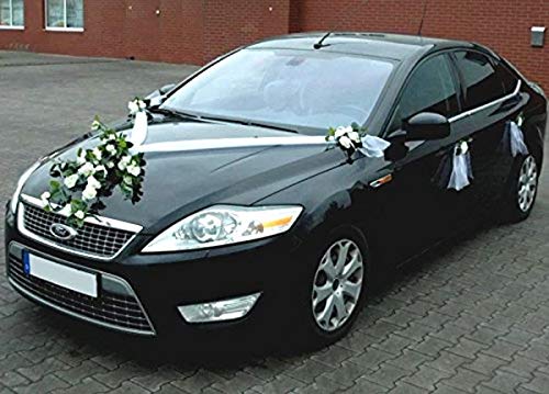 Decorazione per auto in pizzo, per matrimonio, auto, matrimonio, colore bianco