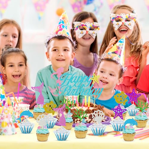 【Topper per torta a forma di sirena】 Ogni topper a tema oceano viene fornito con stuzzicadenti per uso alimentare, facili e convenienti da inserire nella torta, nel cibo o nella frutta.