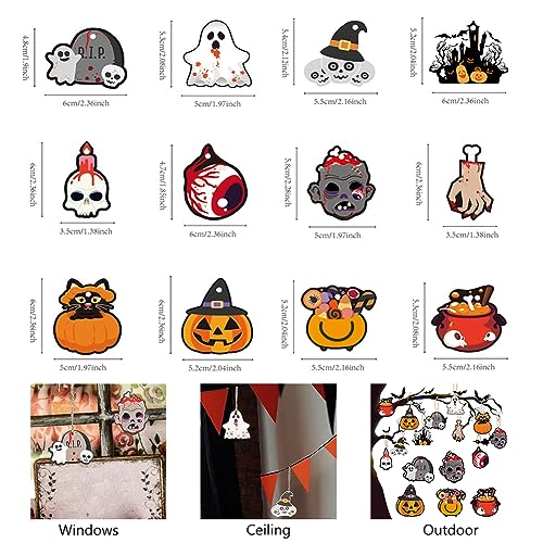 Promemoria perfetto per Halloween: set di decorazioni da appendere per Halloween con 24 incantevoli e vivaci motivi di Halloween. Tutti gli ospiti della festa si sentiranno ansiosi e spaventosi con questo set di decorazioni da appendere per Halloween. È anche una buona idea regalo per i tuoi cari per godersi tali eventi e ricordare un Halloween perfetto.