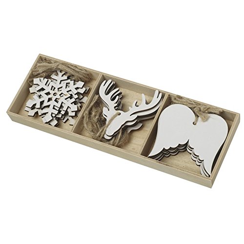 Set di 18 decorazioni da appendere in legno bianco con ali d'angelo, fiocco di neve e corna di cervo