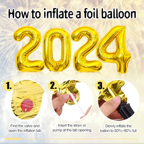 【Facile da assemblare】 Il set di decorazioni per il Capodanno è facile da montare, permettendoti di allestire rapidamente la tua festa. Consigliamo di utilizzare elio o aria per gonfiare i palloncini, in modo che possano fluttuare nell'aria. Si consiglia di non gonfiare i palloncini oltre l'80% della loro capacità per evitare esplosioni.
