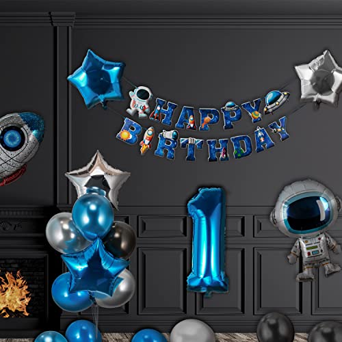 Decorazioni di Compleanno per Bambini Blu, Includere Palloncini di Compleanno Spaziale & Festoni Compleanno Happy Birthday & Palloncino Numero 1