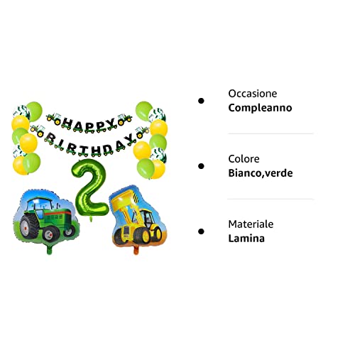 Decorazioni di Compleanno Bambino Happy Birthday Decorazioni XXL Escavatore Trattore Palloncini Compleanno Ragazzo 2 anni Compleanno Festa