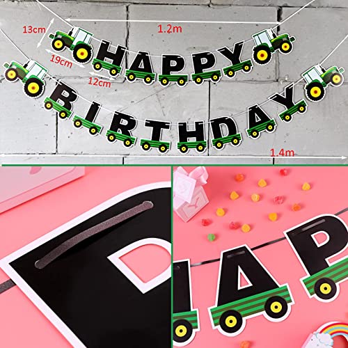 Ghirlanda Happy Birthday per bambini, stampata con una varietà di motivi trattori, l'altezza delle lettere è di circa 16,5 cm, in cartone bianco da 250 g/m²