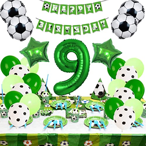 9. Set di decorazioni per compleanno da calcio, 9 anni, decorazione per compleanno, per ragazzi con numero gigante 9, pallone da calcio, 9 anni, decorazione per compleanno