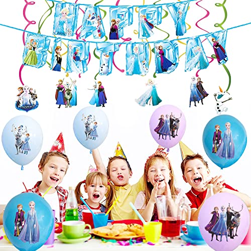Decorazioni di Compleanno Congelatas,40 PCS Frozen Compleanno Decorazioni Palloncini in Lattice Decorazione per Torta Striscioni di Buon Compleanno Toppers Cupcake per Bambini Feste di Tema Frozen