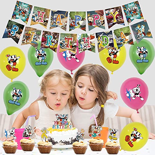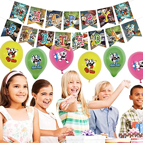 Decorazioni di Compleanno a Tema Cuphead, BESTZY 32 pezzi Decorazioni di Compleanno Cuphead Palloncini, Banner Cake Topper Palloncino, per Decorazione Della Festa