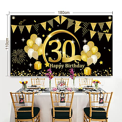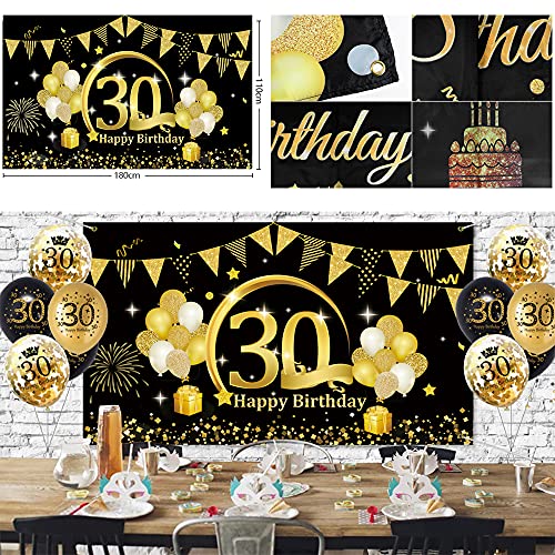 30 Decorazioni Compleanno Oro Nero, 30 Anni Di Compleanno Uomo Donna 30 Anni di Buon Compleanno Decorazione di Festa Poster di Tessuto Sfondo Fotografico Feste di Compleanno