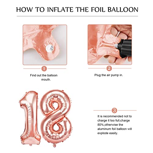 【Facile da allestire】 kit di compleanno 18 anni in oro rosa Anche le persone inesperte possono farlo completamente da sole e la festa è decorata in 30 minuti. Ma attenzione, con questi kit 18 anni di compleanno oro rosa, la palloncini festa 18 anni di compleanno durerà più a lungo per il tuo, ti consigliamo vivamente di usare aria e di gonfiare i palloncini di plastica all'80%, altrimenti i palloncini 18° compleanno di plastica tendono ad esplodere!