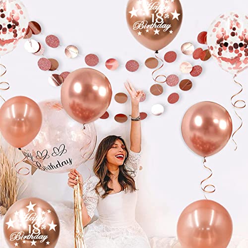 【18 Anni di compleanno】Compleanno 18 *1 (NOTA BENE: 32inch 18 palloncino digitale non può volare in aria dopo il gonfiaggio),18 anni Compleanno Banner*1, RoseGold Palloncini Coriandoli *4, Palloncino Compleanno 18 *6, palloncini in lattice *20, 10inch Pompoms (6 pezzi), glitter carta ghirlanda piccola rotonda decorazione del partito *1 (2m), stella foglia palloncini *2, nastro palloncino *2, 1pcs "Happy Birthday 18" cake topper