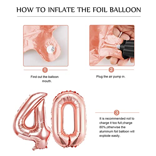 【Facile da allestire】 kit di compleanno 40 anni in oro rosa Anche le persone inesperte possono farlo completamente da sole e la festa è decorata in 30 minuti. Ma attenzione, con questi kit 40 anni di compleanno oro rosa, la palloncini festa 40 anni di compleanno durerà più a lungo per il tuo, ti consigliamo vivamente di usare aria e di gonfiare i palloncini di plastica all'80%, altrimenti i palloncini 40° compleanno di plastica tendono ad esplodere!