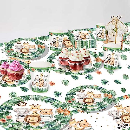 Decorazioni di compleanno della giungla stoviglie ragazzo, forniture per feste a tema giungla, piatto, tazza, tovagliolo, tovaglia, animali della giungla compleanno baby shower decorazioni per feste