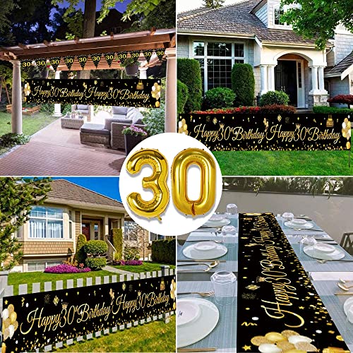 DECORAZIONI COMPLEANNO 30ANNI: riceverai 1 striscione extra large nero e oro per il 30° compleanno (dimensioni: 9 * 1,2 piedi), 1 stamina triangolare stampato su entrambi i lati con 11 bandiere e 15 palloncini stampati (5 palloncini in oro matallico, 5 palloncini neri, 5 palloncini di coriandoli dorati) e il palloncino in alluminio numero 30.