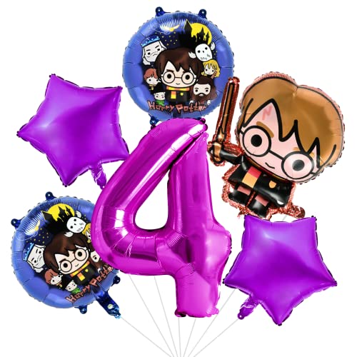 ★ Mago Decorazioni Compleanno: include 1 palloncino digitale 4, 2 palloncini rotondi in alluminio, 2 palloncini in alluminio a stella, 1 Palloncino Harry. È molto adatto come decorazione per feste a tema, amata dai bambini.