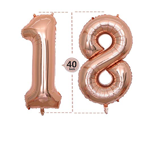 Decorazioni di compleanno in oro rosa per la 18a ragazza:lamina di elio Banner di buon con ghirlanda e numero 18 e 40 palloncini e palloncino a cuore a 4stelle per la festa di compleanno della figlia