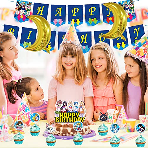 Decorazioni di compleanno di Sailor Moon, Hilloly 45 Pcs Articoli per Feste Sailor Moon, Forniture Per Feste a Tema Sailor Moon, Happy Birthday Banner, Palloncini, Cake Topper, Cupcake Topper
