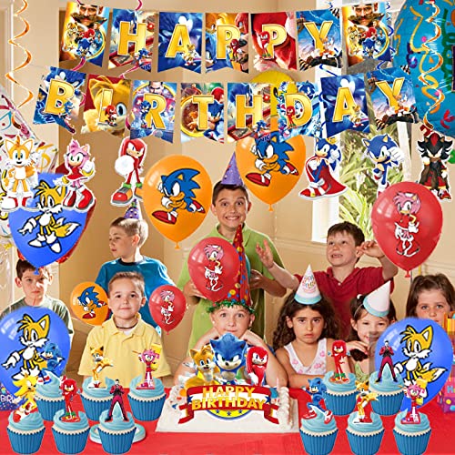 Decorazioni di Compleanno Sonic the Hedgehog Palloncini Sonic Striscioni di Buon Compleanno Hedgehog Torta Decorazione Ornamenti Spirali per Bambini Sonic Hedgehog Articoli per Feste