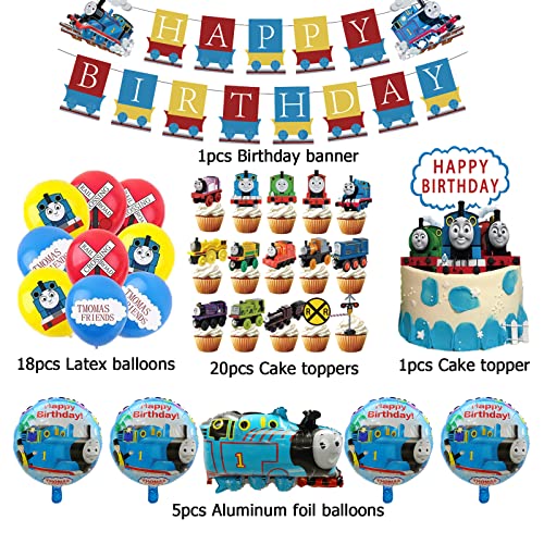 Festa di compleanno kit thomas il pacchetto include: 18pcs palloncini in lattice thomas, 1pcs banner di compleanno thomas train, 21pcs decorazioni per torte thomas, 5pcs palloncini in alluminio thomas and friends.