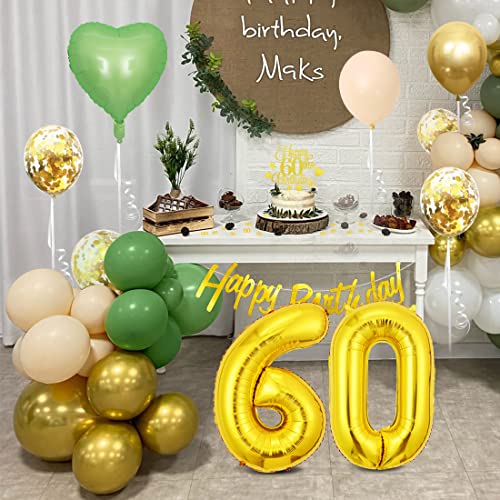 Decorazioni 60 Anni Compleanno Oro Verde, Palloncini 60 Anni Compleanno Donna, Palloncini Numeri 60 e Happy Birthday Banner, Addobbi 60 Anniversario Donna Verde per Feste di Compleanno