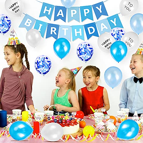 Decorazioni per Feste di Compleanno Blu, Palloncini Bianco Blu, Striscione Buon Compleanno, Palloncini Ripieni di Coriandoli, Forniture per Feste di Compleanno per Bambini Adulti
