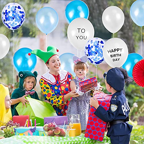 Decorazioni per Feste di Compleanno: 48 palloncini in lattice (10 palloncini blu metallizzato, 10 azzurri, 10 coriandoli, 10 bianchi, 4 palloncini stampati "Happy Birthday", 4 palloncini stampati "TO YOU"), 1 banner "Happy Birthday", 2 nastro.