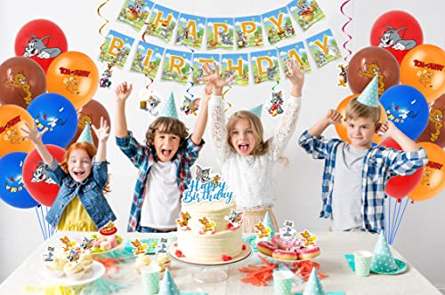 Decorazioni per Feste di Tom e Jerry 48 pcs, Festa di Compleanno, Tom e Jerry Compleanno Palloncino, Banner di Compleanno, Tom e Jerry cake Topper, Bambino Decorazione Forniture per Feste Compleanno
