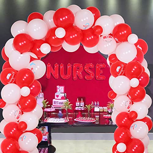 Sfondo adorabile per la festa: scegliendo il set di decorazioni per la laurea bsn per adornare la festa di laurea 2022 della nuova infermiera, la ghirlanda di palloncini rossi e bianchi è facile da configurare e ti offrirà uno sfondo perfetto per la festa, e potresti scattare molte foto per lasciare l'indimenticabile giorno.