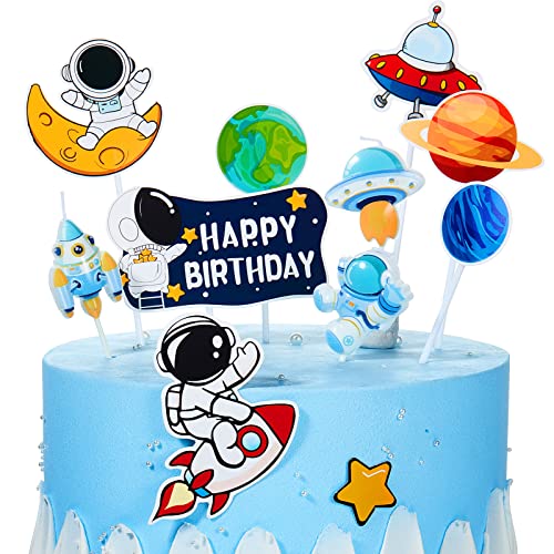 Set di Decorazioni per Feste a Tema Spaziale da 11 Pezzi, 3 Bastone Astronauta Razzo Astronave Candele Divertenti per Feste di Compleanno, 8 Topper per Cupcake nello Spazio Esterno