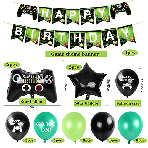 Decorazioni per Feste di Videogiochi 11 anni, Palloncini di Compleanno di Gioco, Palloncino Controller, Striscione Buon Compleanno, Palloncini Verde Nero, Forniture per Feste