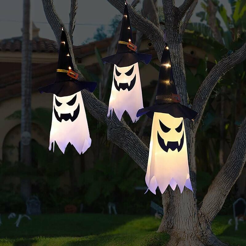 Dimensioni: 45 * 20 cm DECORAZIONE UNICA DI HALLOWEEN: riceverai 3 lampade a cappello da strega luminose, è una buona idea appenderle in cortile, patio, grondaie e alberi. Quando cala la notte, sembrano fluttuare nell'aria, creando un'atmosfera misteriosa. DESIGN PERFETTO: queste decorazioni di Halloween hanno stampe di smorfie su entrambi i lati, ogni cappello da strega è dotato di un bottone, quindi puoi accendi istantaneamente l'interruttore per decorare il tuo giardino, la combinazione perfetta di luci fantasma e luci per illuminare il tuo Halloween, dai il benvenuto al tuo caro vicino. 3 modalità lampeggianti: ci sono 3 modalità lampeggianti per Halloween: ti illumina può scegliere: lampeggiante veloce, lampeggiante, sempre acceso. Diverse modalità di illuminazione creano un'atmosfera festiva diversa. Occasione: le luci di Halloween possono essere decorate all'interno e all'esterno. Puoi appenderli nella tua stanza per aggiungere atmosfera alla tua festa di Halloween, oppure puoi