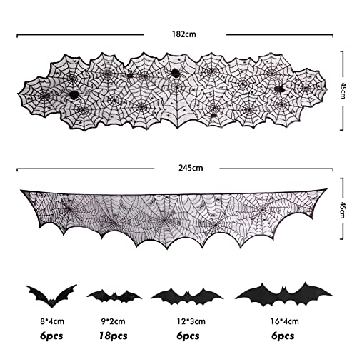 53 Pcs Decorazioni di Halloween Set per interni Set di decorazioni di Halloween per casa Festa Cucina Ragno Web Table Runner Banner Halloween Mantel Sciarpa 36 PZ 3D Bat Sticker Spooky Home Decor