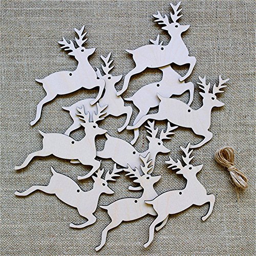 Odn, 10 decorazioni in legno per albero di Natale, da appendere, Multi, Jumping Deer
