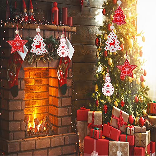 Decorazioni Legno Albero Natale, 48 Pezzi Ornamenti Natalizi in Legno da Appendere, Ciondoli Pendenti Legno Natalizi con cordicina e perline per Albero di Natale Abbellimenti