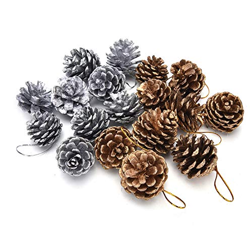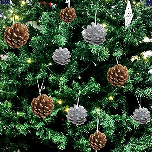 Decorazioni natalizie coni di pino,18 pezzi coni di pino Ornamenti naturali con corde Partito Appeso Artigianato Colori/Argento per la decorazione dell'albero di Natale, 2 Dimensioni pino coni Style-3