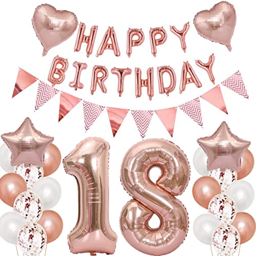 DECORAZIONI PERFETTE PER LA FESTA DI COMPLEANNO 18: Set di palloncini per striscioni di compleanno in oro rosa di alta qualità, decorazione perfetta per rendere il tuo 18° compleanno creare un'atmosfera attiva e rendere gli ospiti più benvenuti.L'idea regalo speciale per ragazze/donne.