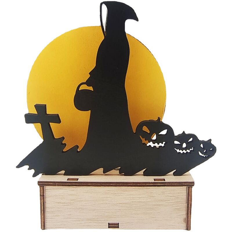 Decorazioni per la scrivania in legno di Halloween Materiale: compensato Artigianato: incisione Metodo di produzione: semi-manuale e semi-meccanico < p>Luce notturna vuota morte fantasma fantasma festival puntelli ornamenti di halloween in legno