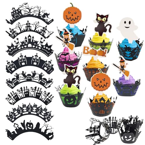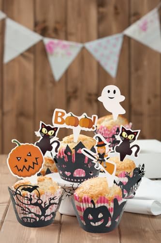 Decorazioni Torta Halloween 50 Pezzi,Halloween Cupcake Topper e Wrapper,Wrapper Cupcake Halloween,Halloween Cake Topper,Cupcake Toppers,Topper Per Torta Compleanno A Tema Halloween Per Bambini