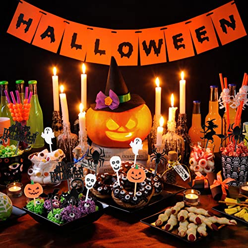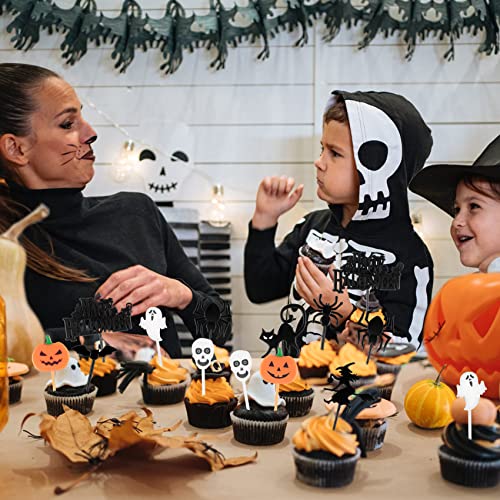 Decorazioni Torta Halloween, 100 PCS di Halloween Topper di Torta Topper Forma di Zucca, Fantasma, Pipistrello Halloween Cake Toppers Decorativo per Torta Panini Cupcake Formaggio Antipasto Decor