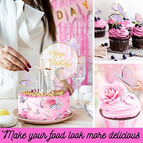 Fantastiche cake toppers - Le ali delle farfalle rosa e viola hanno bordi e trame dorate, sono dotate della benedizione che dice "Buon compleanno" topper per torta, sembrano lucide e impressionanti. Ideale per la maggior parte delle torte, cupcakes, muffin, dessert, pasticcini e altre decorazioni fai-da-te.