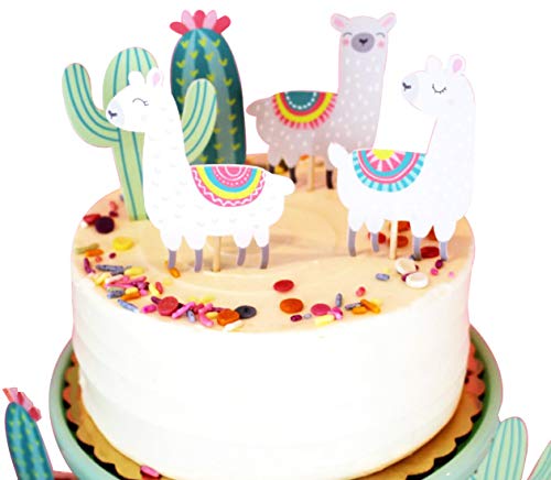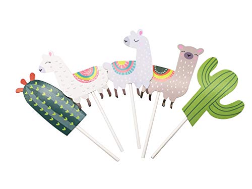 Decorazioni fai da te per torte e cupcake di compleanno, a forma di alpaca e cactus, con glitter, alternativa alle candeline per una festa originale