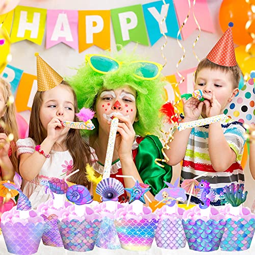 Decorazioni per Torte a Forma di Sirena,Set di 24 Sirena Involucri per cupcake,Cupcake Topper e Wrapper,Cupcake Wrapper Custodie,per Sirena Feste Tema di Decorazioni,Feste di Compleanno Decorazioni