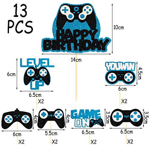 【Decorazione per torte Ragazzo】totale 13 pezzi, 1 Gamepad "Happy Birthday" Cake Topper, 6 diversi controller decorazioni per torte, 2 pezzi di ogni stile